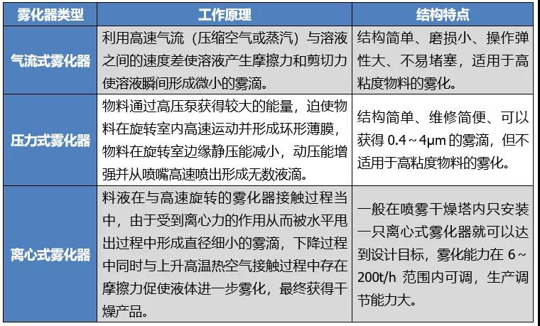 具有三種霧化器結(jié)構(gòu)的噴霧干燥器的結(jié)構(gòu)特征