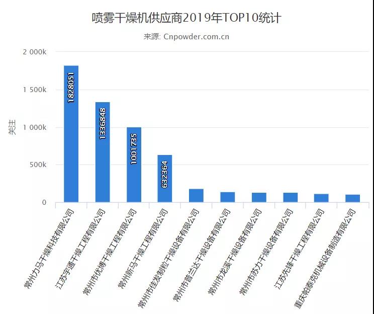 制藥行業(yè)對噴霧干燥器的采購需求已顯示出強勁的驅(qū)動力,從2018年的10.8增加到2019年的32.9。